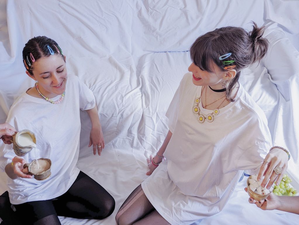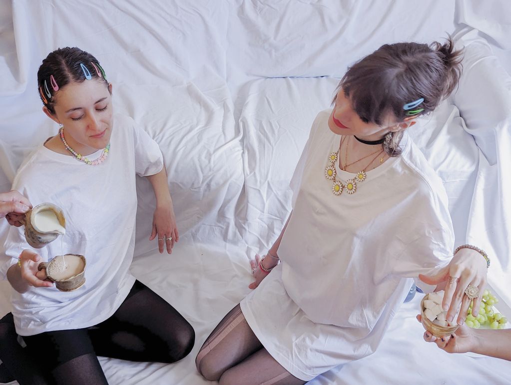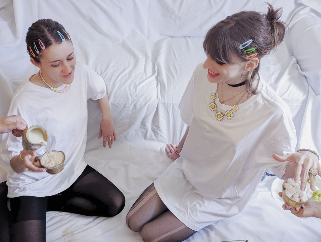 Showcasing early pottery pieces and more, two girls indulge in an afternoon of delight and joy while trying to ease their bordem.